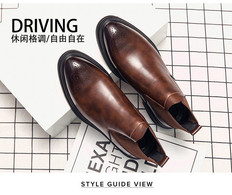 SHORT POINTED BRITISH SLIP-ON LEATHER CHELSEA BOOTS