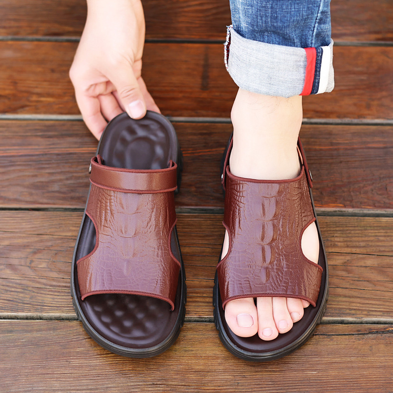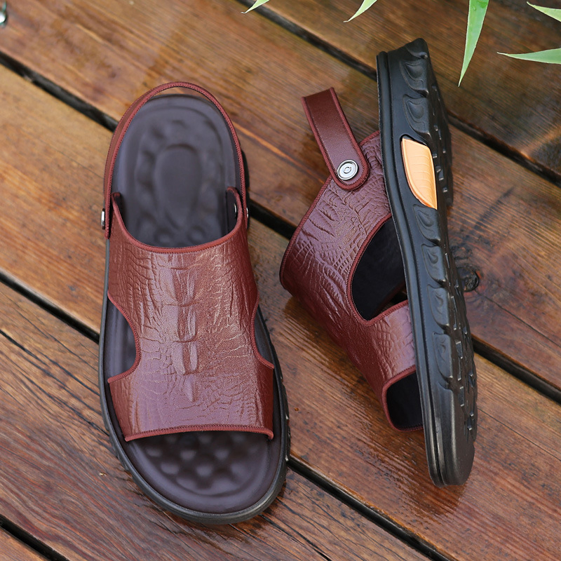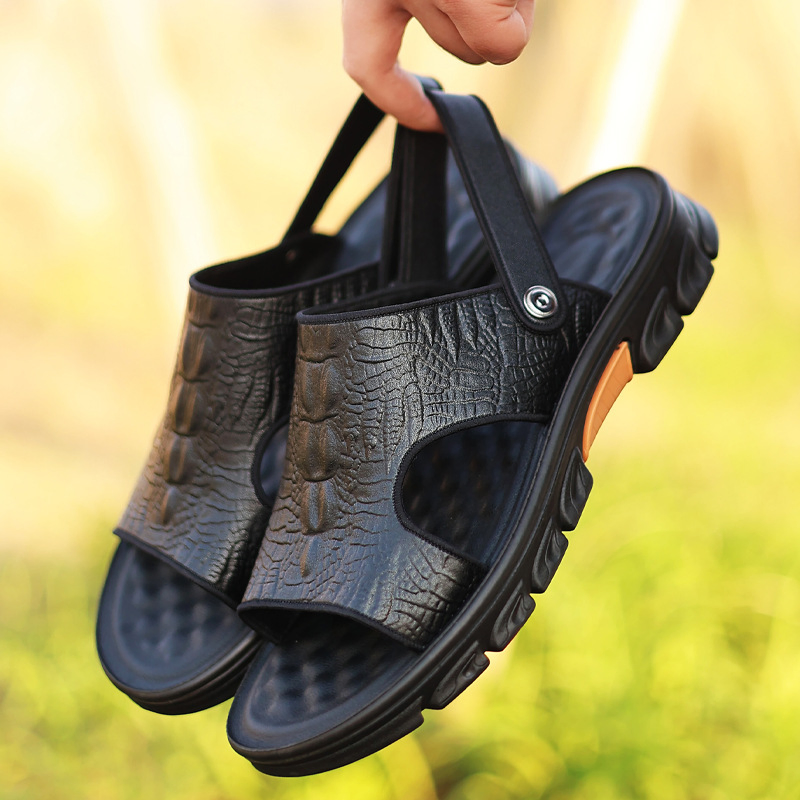 GENUINE LEATHER OUTDOOR CROCODILE PATTERN FASHION SANDALS