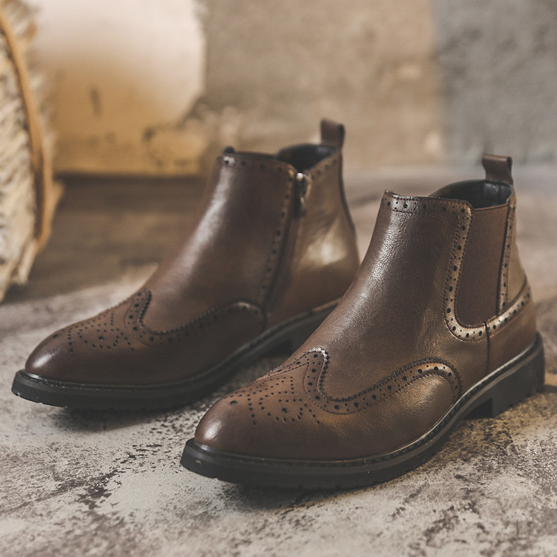 GENUINE LEATHER HIGH TOP BUSINESS BRITISH RETRO CHELSEA BOOTS